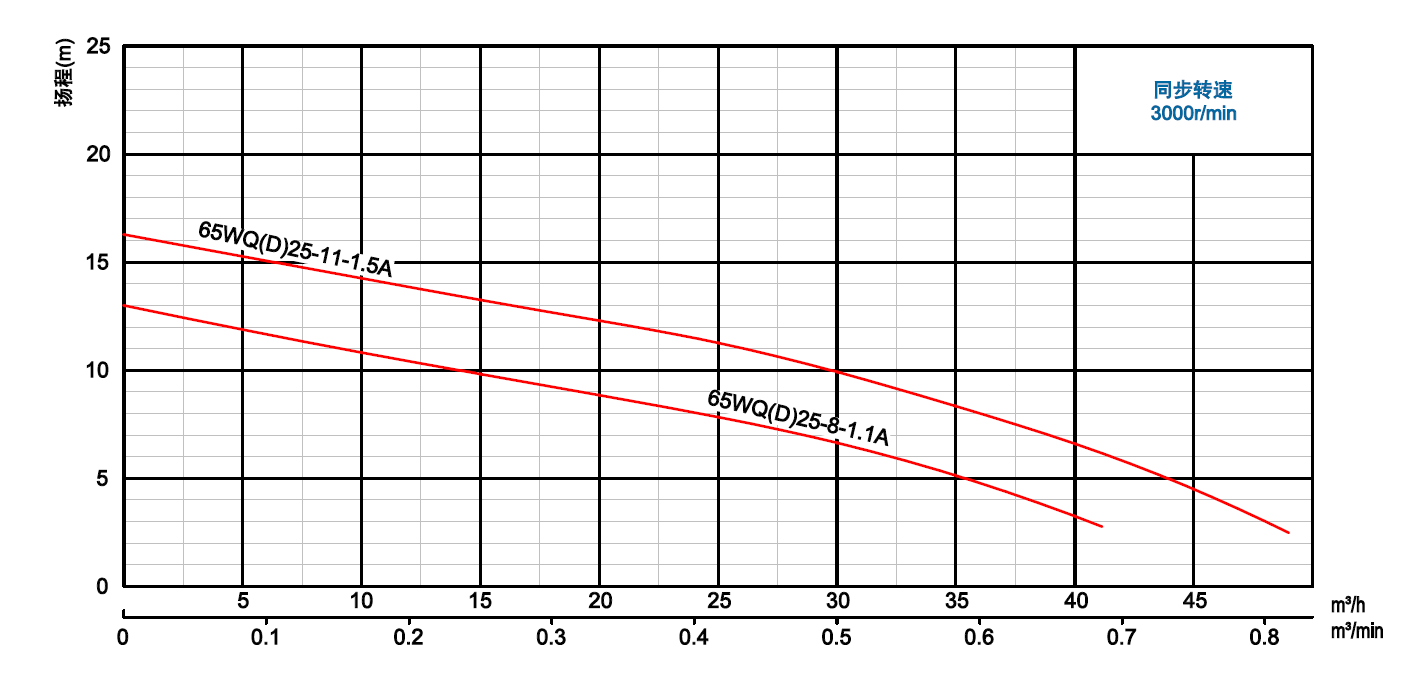 WQ系列双流道潜水排污泵结合了国内外同类优秀产品,经过PCAD软件优化设计而成,在水力模型、结构、密封、冷却和保护控制等方面进行了综合优化和创新设计。叶轮为双流道设计,有较大的进口和出口宽度,无堵塞性能好,高效节能,安全可靠,寿命长。