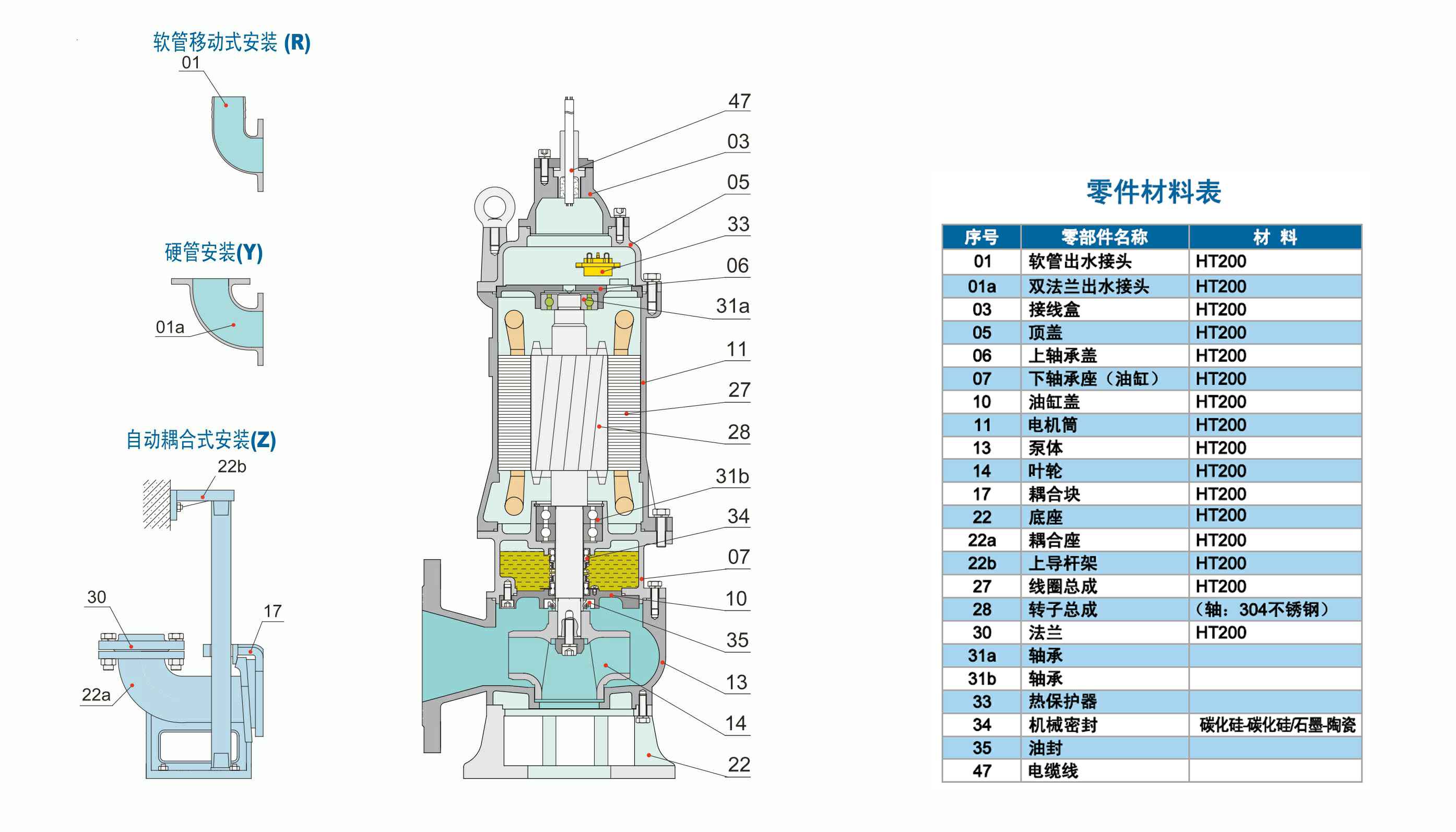 WQ系列双流道潜水排污泵结合了国内外同类优秀产品,经过PCAD软件优化设计而成,在水力模型、结构、密封、冷却和保护控制等方面进行了综合优化和创新设计。叶轮为双流道设计,有较大的进口和出口宽度,无堵塞性能好,高效节能,安全可靠,寿命长。
