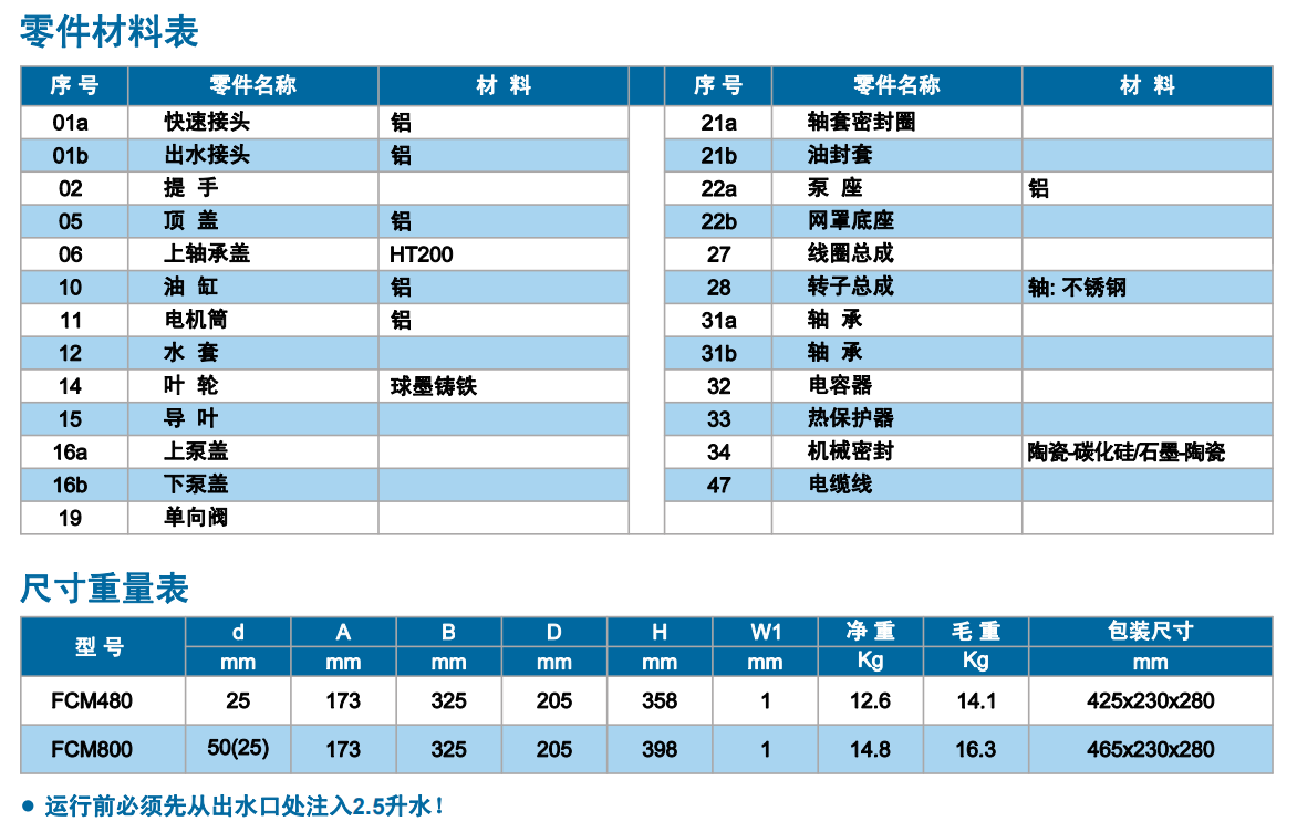 FCM系列吸干潜水泵是一种便携式潜水式残排放泵。底部进水口设计有单向阀,可防止管路中的水在泵运行停止后回流,最低水位可抽至1mm。电泵采用轻量化设计;水泵外径小,有利于在狭窄的空间使用;泵部件采用耐磨橡胶和球墨铸铁,具有优异的耐用性。水从底部吸入、经电机壳与水套夹层由顶部排出,给电机提供最高的冷却效率,允许低水位连续运行;半开式叶轮与泵体间有大间隙,叶轮不易被泥砂卡死。出水接头可以竖直或倾斜安装,可防止排放软管折叠或弯曲。